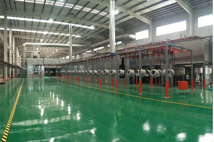 兩條從美國引進的全自動無內胎生產線。可以加工寬度為3”~20”,直徑12“~38”的各型車輪。