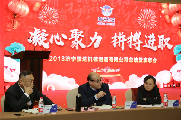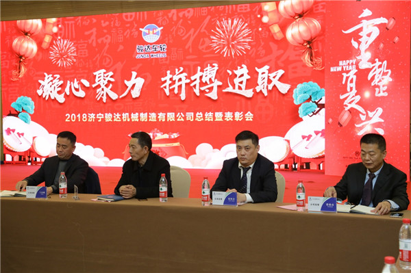 2019年1月25日,濟寧駿達機械制造有限公司2018年度總結暨表彰會在圣都國際酒店隆重召開,公司領導班子,生產班長、段長、主管及以上管理人員、全體在職黨員、受表彰的先進個人共計100余人參加了會議。