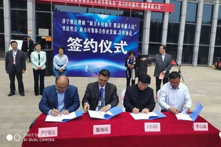 濟(jì)寧駿達(dá)定向贊助“助力鄉(xiāng)村振興 精品奉獻(xiàn)人民”書畫筆會(huì)等活動(dòng),助推村集體合作社發(fā)展合作協(xié)議,簽約儀式成功舉辦。 2019年4月20日,濟(jì)寧駿達(dá)機(jī)械制造有限公司出資100萬(wàn),定向贊助“助力鄉(xiāng)村振興 精品奉獻(xiàn)人民”書畫筆會(huì)等活動(dòng),助推村集體合作社發(fā)展合作協(xié)議簽約儀式,在魯西南紀(jì)念館成功舉辦。