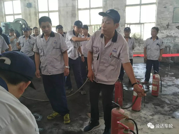 陳總現(xiàn)場指導(dǎo)員工如何正確使用滅火器
