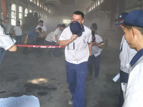 火災(zāi)模擬現(xiàn)場,員工積極搶險(xiǎn)救災(zāi)