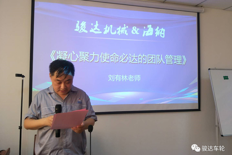 《凝心聚力使命必達的團隊管理》現場培訓6月6日在公司南二樓會議室進行,培訓由海納管理學院劉有林專家老師授課,公司黨委書記、副總經理張鐵巖、行政總監張德彥、生產總監汪有國、質量總監陳志剛及班組長以上管理人員共計50余人參加了培訓。