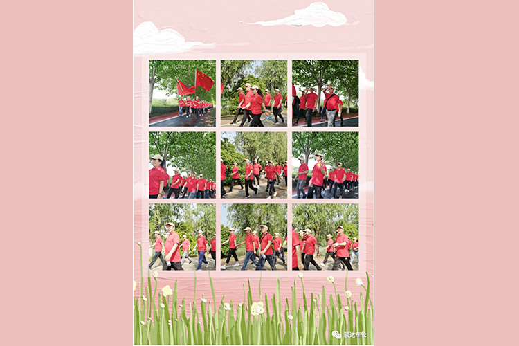 綠植蔥蔥,天空碧藍。在整個太白湖徒步過程中,大家統一著裝,伴隨著音樂的節奏,精神抖擻,昂首闊步,呼吸著清新的空氣,欣賞著路旁綠樹、青草、鮮花,聆聽著清脆的鳥叫聲。雖已初夏五月天,輕風吹過仍透著涼爽,但隨著行進的步伐,也是濕透了衣衫。一路上大家興致勃勃,有說有笑,臉上滿滿的快樂,心中洋溢著幸福,在鋪滿綠蔭的跑道上,留下了我們運動的身影和美麗的景色,職工們享受著愜意,盡情舒懷。