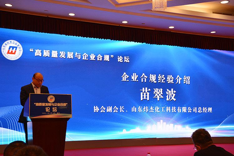 協(xié)會(huì)維權(quán)委員會(huì)副主任、濟(jì)南控險(xiǎn)咨詢(xún)有限公司總經(jīng)理鄧瑩作《合規(guī)實(shí)踐中對(duì)民營(yíng)企業(yè)合規(guī)管理的幾點(diǎn)認(rèn)識(shí)》講座;協(xié)會(huì)副會(huì)長(zhǎng)、山東煒杰化工科技有限公司總經(jīng)理苗翠波介紹了企業(yè)合規(guī)經(jīng)驗(yàn)。