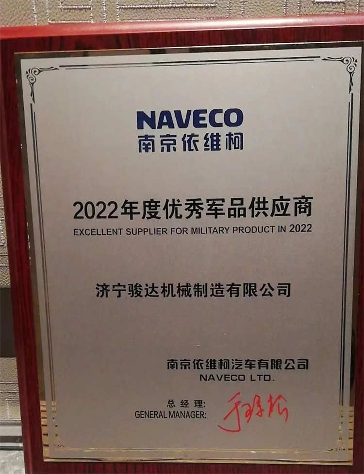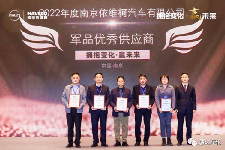 駿達公司緊跟南京依維柯汽車有限公司的發展步伐,憑借穩定可靠的品控能力、經驗豐富的技術優勢、細致的售后服務,尤其是疫情防控常態化下的高度敬業精神,獲得南京依維柯的認可,榮獲“2022年度*軍品供應商”的稱號。公司黨委書記張鐵巖代表公司領獎牌。